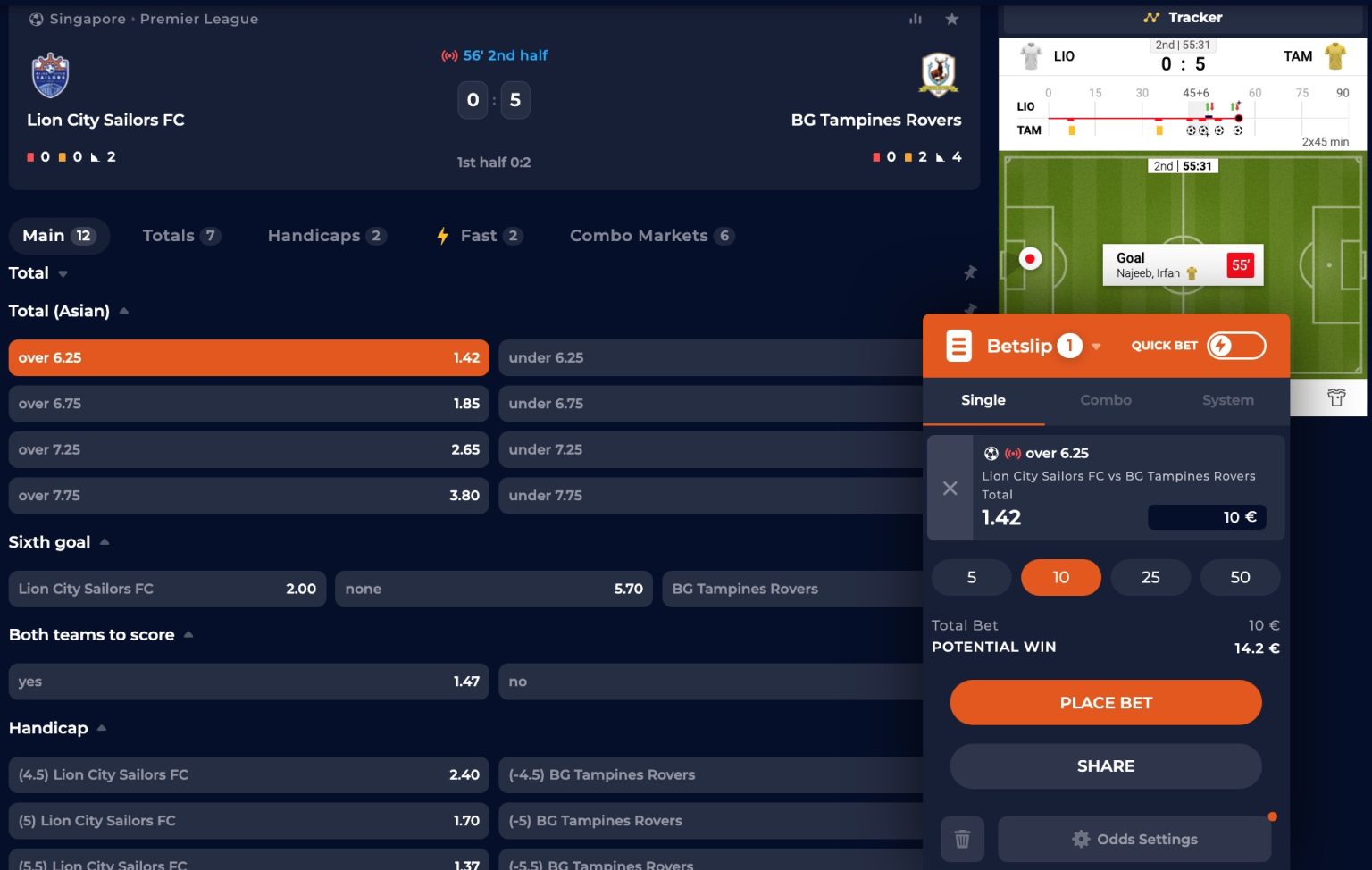 Le site propose un espace dédié aux paris sportifs avec un système de jeu en ligne complet couvrant plus de 50 sports et marchés eSports différents. J’ai comparé les cotes avec celles d’autres casinos en ligne comme Wild.io et Thunderpick (deux casinos en ligne crypto agréés), et j’ai été très satisfait. Les cotes étaient meilleures sur Nine.